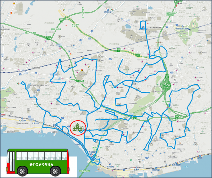 送迎バスの運行ルート 舞子幼稚園では送迎バス3台 合計8ルートで運航しています 運行ルート・バス時刻表は「保護者様ページ」に掲載しています。 ※運行ルートは変更になる場合があります ※KidsDiaryでバスの現在位置の目安を配信しています